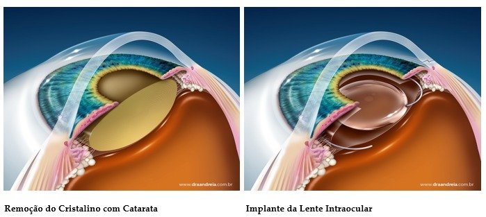 Durante a cirurgia, a lente opaca é removida e substituída por uma lente intraocular artificial, devolvendo nitidez, contraste e qualidade visual.